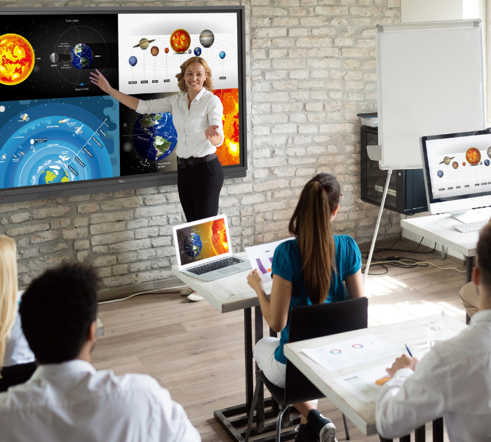 Promethean focuses predominantly on screens for education. Their ActivPanel displays are immersive and offer an interactive experience for students and teachers alike. The ActivPanel offer a mirroring feature that make sharing work and ideas in a classroom easier and more seamless.