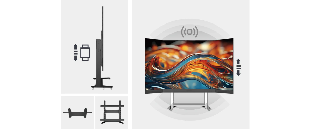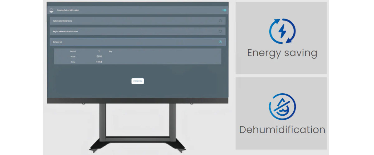 Built for convenience: the screen comes in a foldable, all-in-one format with a sturdy die-cast aluminium cabinet and integrated base. There’s no need for complicated assembly — unfold, power on, and you’re ready. A pre-installed Android OS offers flexible content management; HDMI, USB, LAN, Wi-Fi and audio interfaces give you a wide range of connectivity options in one package. Built-in speakers add audio without the need for external equipment.