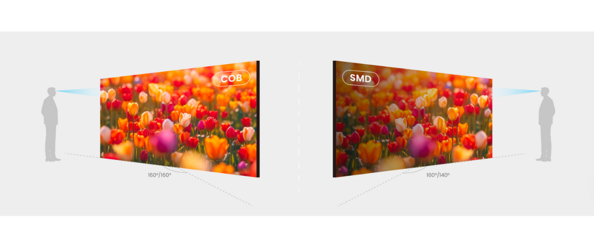 Using advanced Mini Flip-COB (Chip-on-Board) LED technology, the panel achieves bright, uniform lighting with a 600 nit maximum brightness and a consistent color temperature around 9300 K. With a wide 160° horizontal and vertical viewing angle, content remains vivid and distortion-free from almost any vantage point.