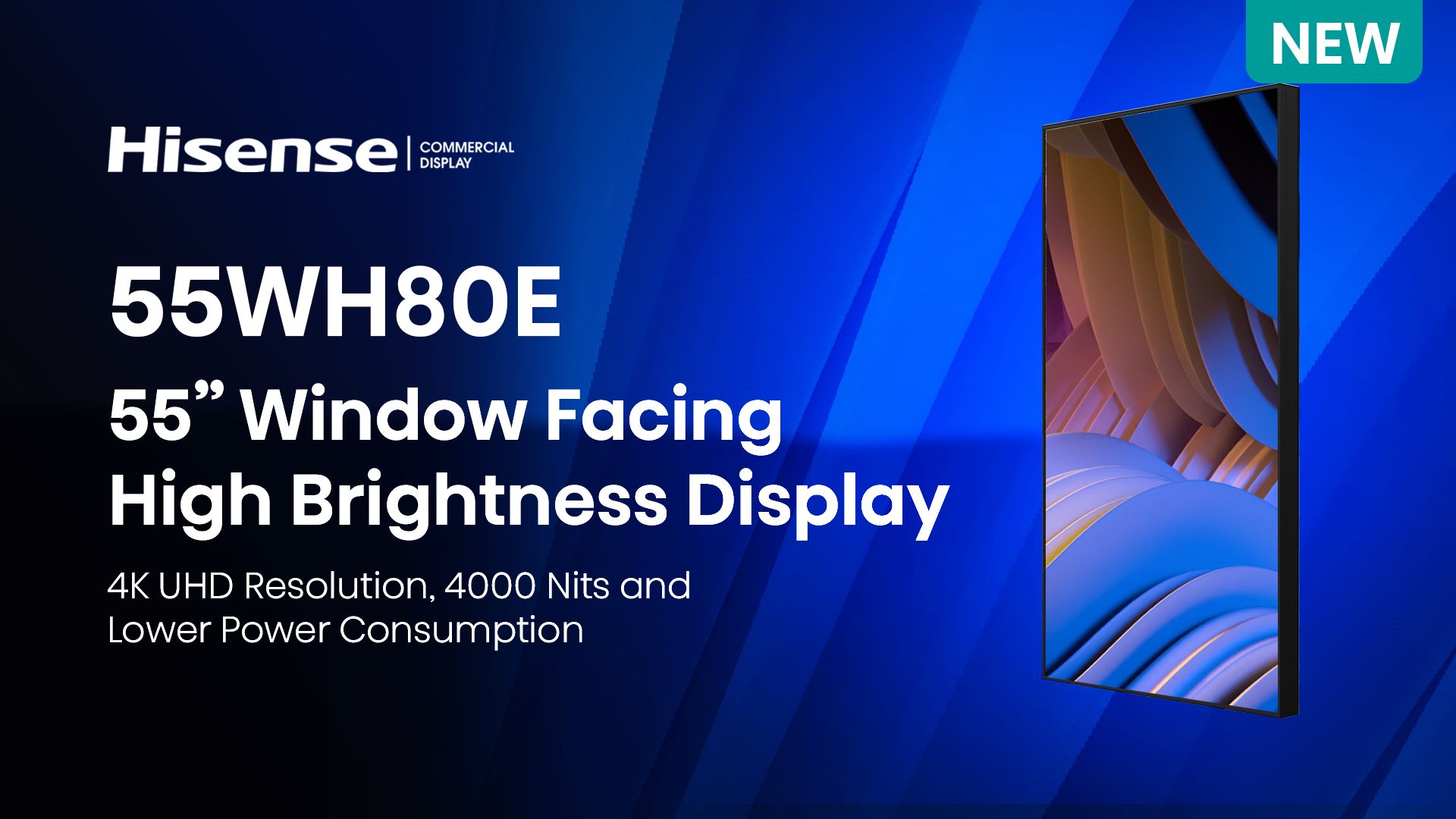 The Hisense 55WH80E is a premium 55-inch 4K Ultra HD window-facing display designed to make your digital signage stand out in any environment. With an exceptional brightness of 4000 nits, this display ensures your content is clear, vibrant, and highly visible even in direct sunlight, making it the ideal solution for retail windows, shopping centers, transportation hubs, and other high-traffic public spaces.