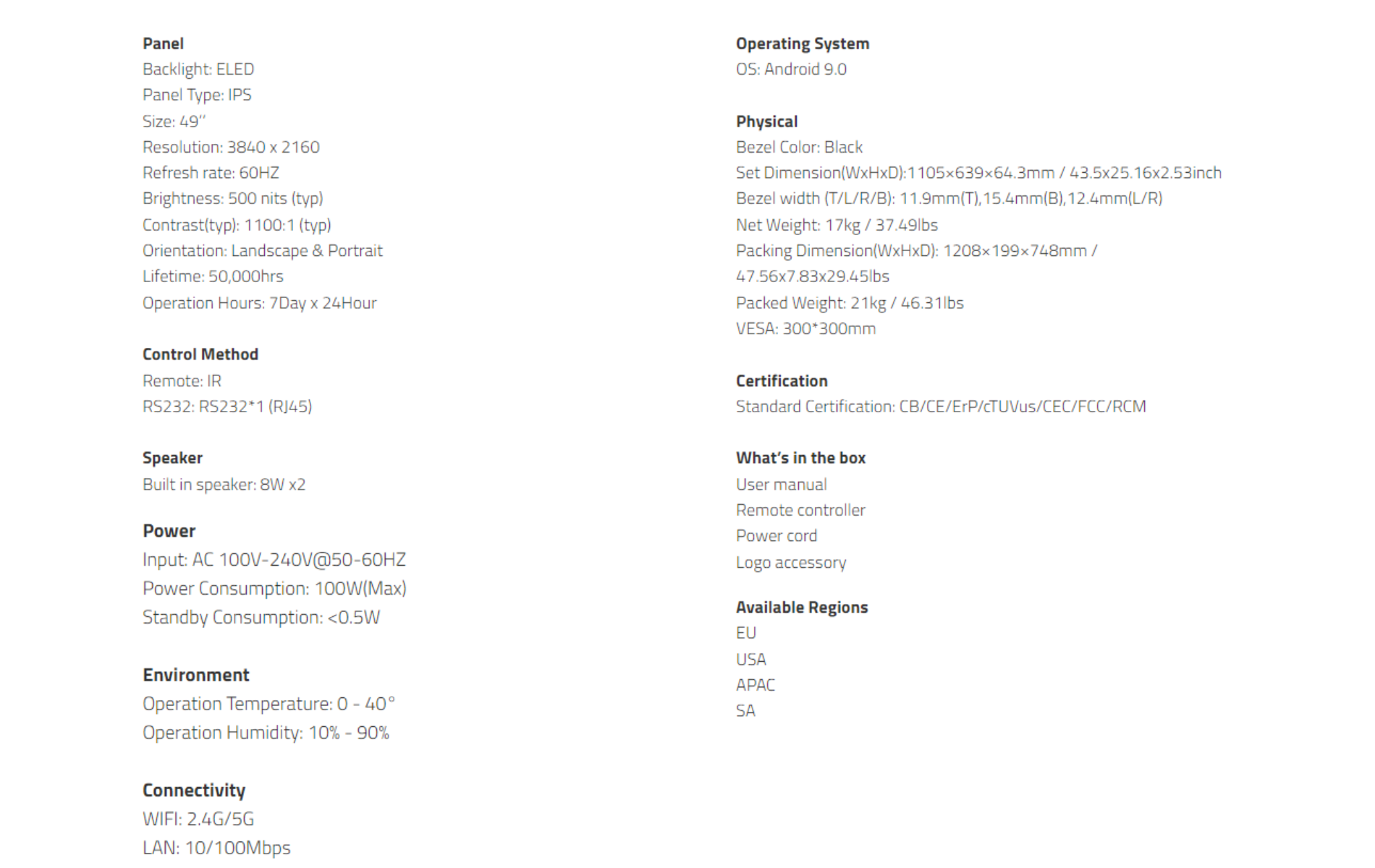Hisense’s BM66AE Digital Signage Displays (49”/55”) are perfectly fit for public transport and retail locations. Their slim body design will make them blend into their surrounding and make your on-screen messaging stand out. Their vivid and vibrant colours immerse viewers and will effectively provide them with the information they are looking for.