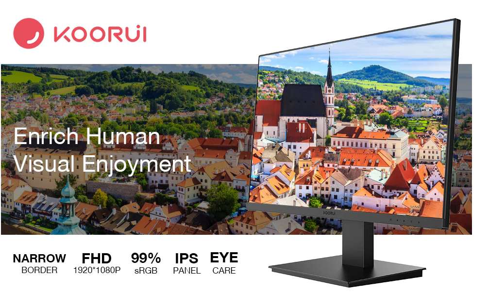 The Koorui 24N1 is a 23.8″ IPS business monitor featuring Full HD 1920×1080 resolution, 75 Hz refresh rate, and a slim bezel design — perfect for productivity, office work, and professional setups with crisp visuals and wide viewing angles.