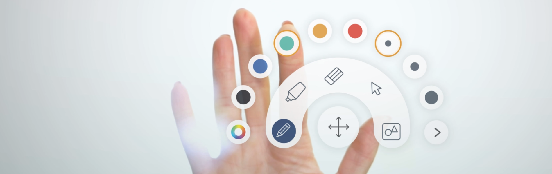 Easily move and position the toolbar anywhere on the infinity canvas. Instantly select tools, such as an eraser, ruler and highlighter, change colours or import images to enhance any lesson.